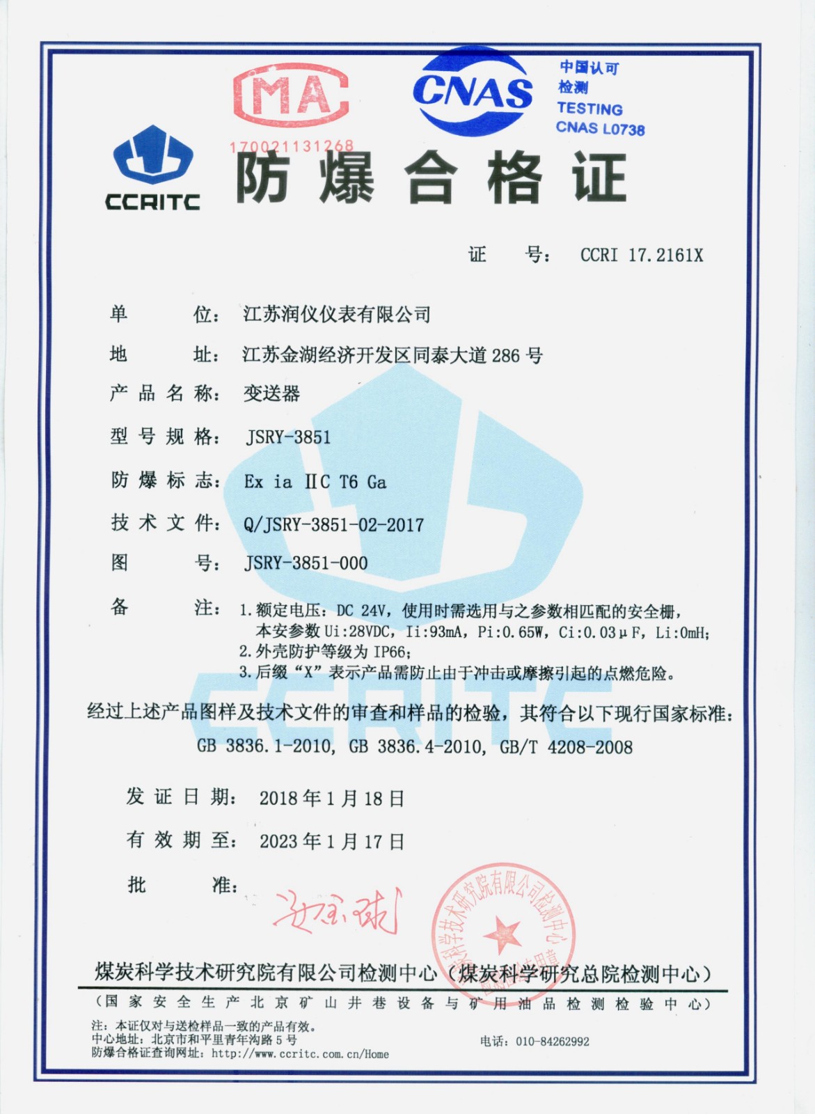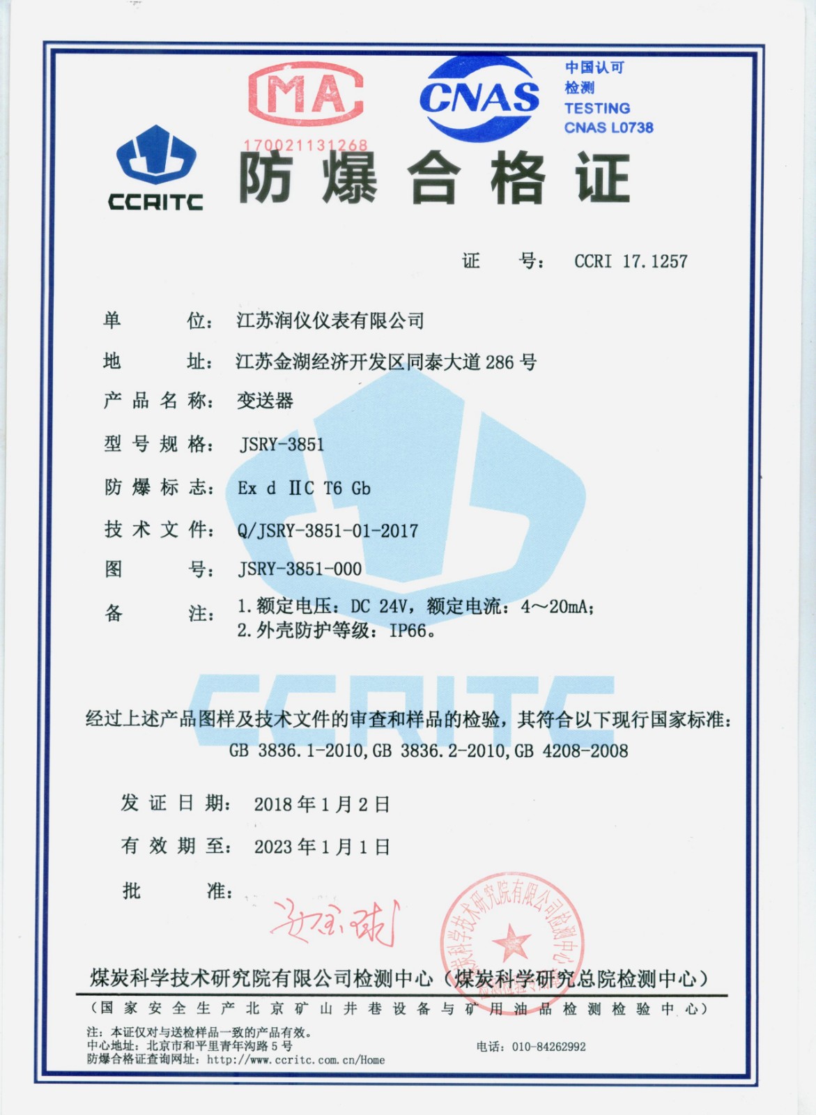 變送器防爆合格證